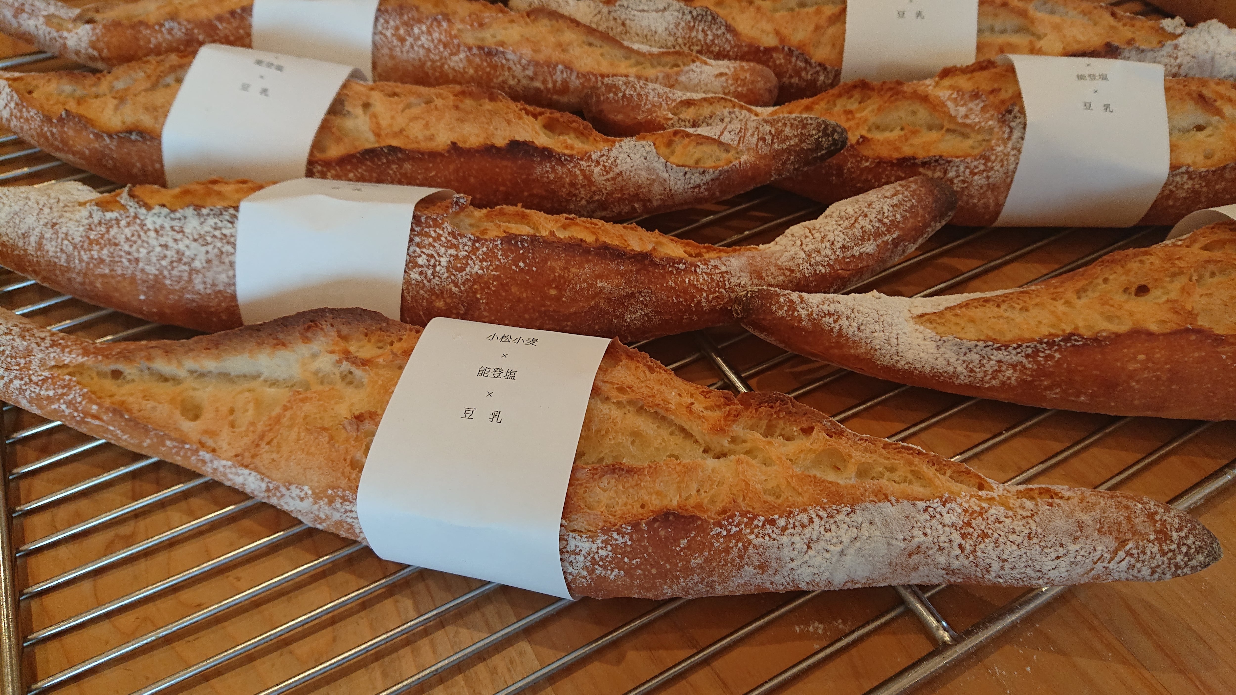石川県、能登の塩と小松の小麦、豆乳のみを使用した香ばしいバゲットです。 お家でめんたいクリームを塗ってめんたいバゲットにしたり、ガーリックトーストもいいですね。